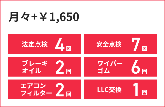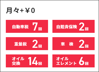月々のお支払いには、車両代、税金、自賠責保険、車検費用、オイル交換などのメンテナンス費用など、リース期間中に発生する費用がコミコミなので、お客様は毎月定額のお支払いで安心して計画的にお車に乗るだけです。